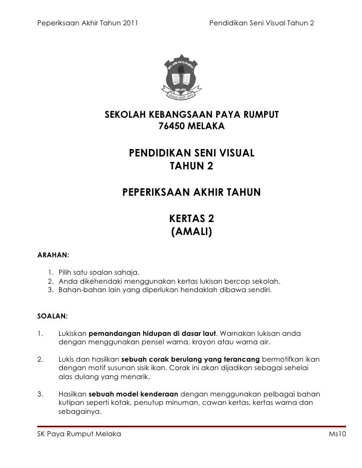 Soalan Dan Jawapan Pendidikan Seni Visual Tingkatan 2